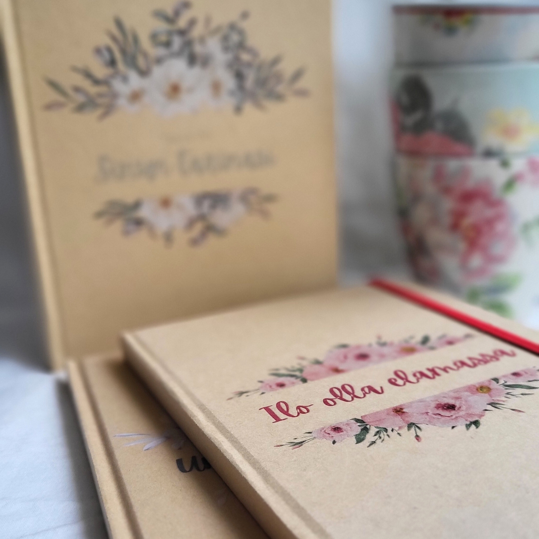 - Ilo olla elämässä (punainen) - kiitollisuuspäiväkirjaksi tai arjen oivallusten tallentajaksi. Kirjoita ylös hetket, jotka herättävät ilon ja lämmön ✨